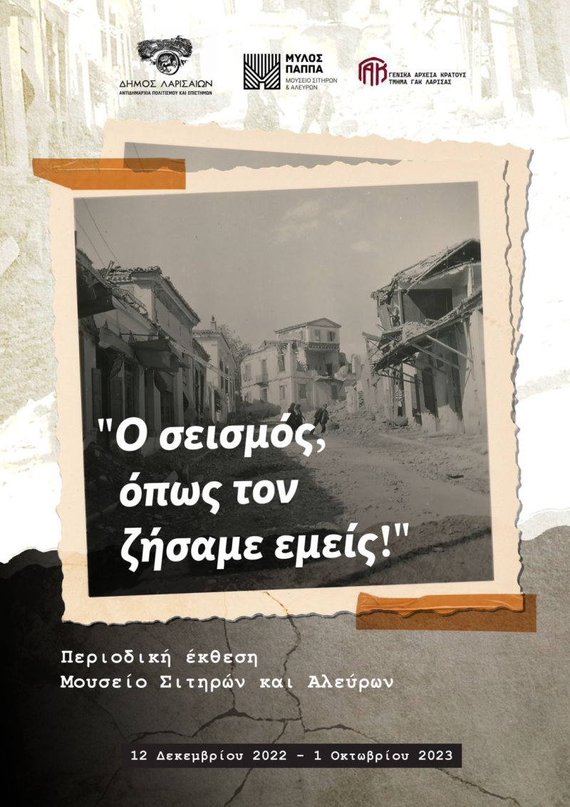 Τη Δευτέρα 12 Δεκεμβρίου 2022 ανοίγει για το κοινό η περιοδική έκθεση “Ο σεισμός, όπως τον ζήσαμε εμείς!” που συνδιοργανώνεται από την Αντιδημαρχία Πολιτισμού και Επιστημών, το Μουσείο Σιτηρών και Αλεύρων και τα Γενικά Αρχεία Κράτους – Παράρτημα Λάρισας, μέσα στους χώρους της μόνιμης έκθεσης του Μουσείου.