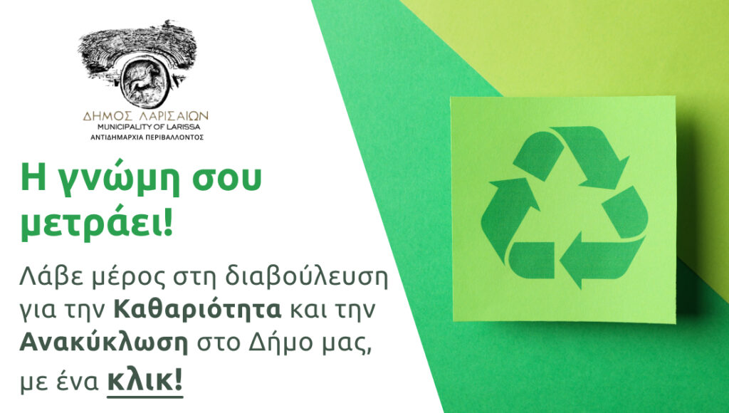 Διαδικτυακή διαβούλευση του Δήμου Λαρισαίων για την Ανακύκλωση και την Καθαριότητα