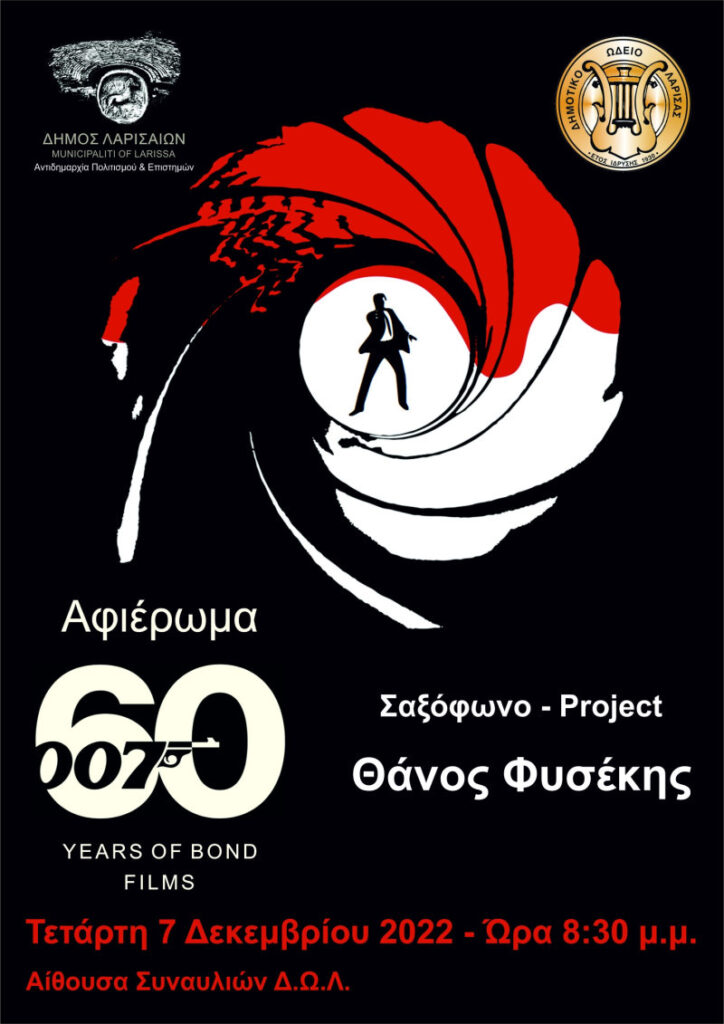 Πρωτότυπη οπτικοακουστική παράσταση διάρκειας 50 λεπτών με αποσπάσματα από τις ταινίες του James Bond, με αφορμή τα 60 χρόνια του