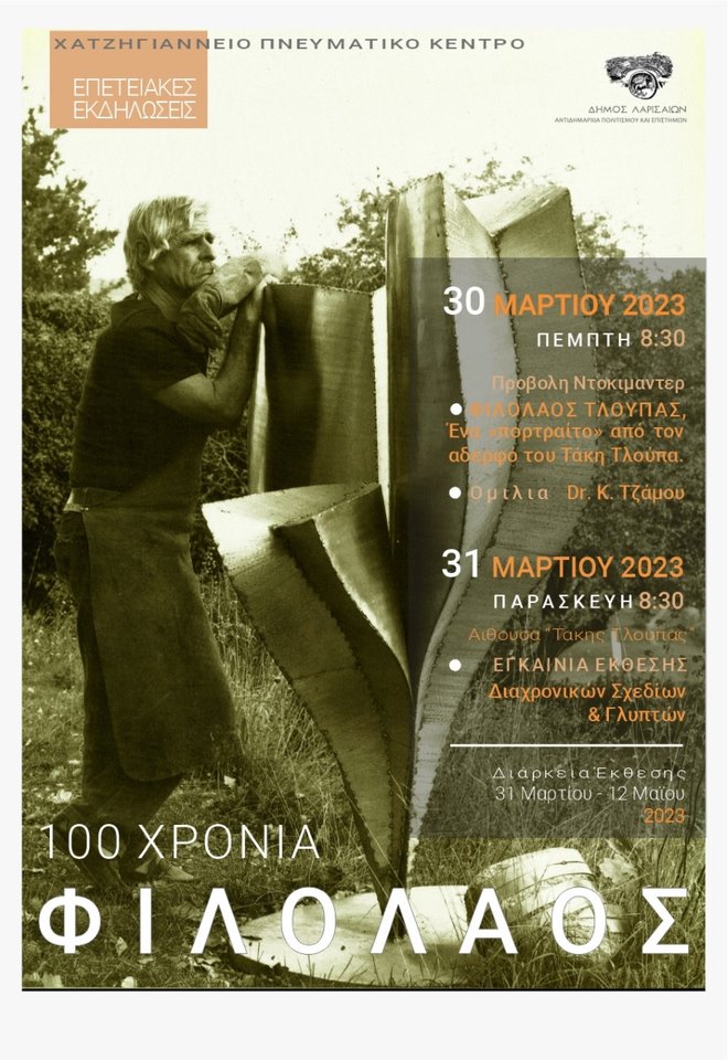 Η Αντιδημαρχία Πολιτισμού & Επιστημών Δήμου Λαρισαίων, διοργανώνουν εκδηλώσεις με τίτλο “1923-2023 / Εκατό χρόνια Φιλόλαος”, την Πέμπτη 30 και