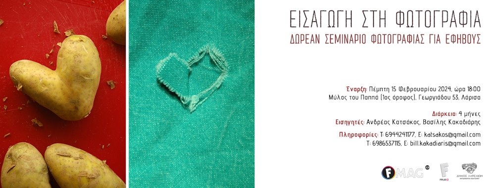 Το διαδικτυακό φωτογραφικό περιοδικό fmag και η Φωτογραφική ομάδα fplus, σε συνεργασία με την Αντιδημαρχία Πολιτισμού του Δήμου Λαρισαίων ανακοινώνει