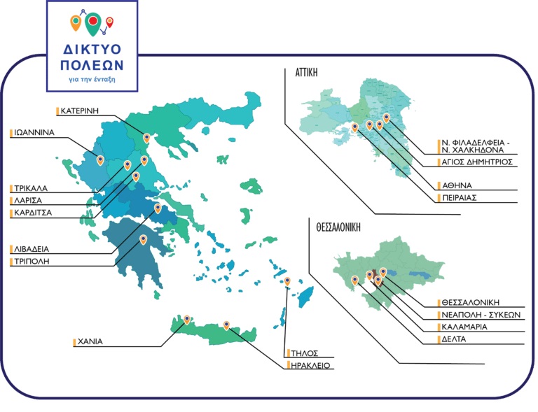 Το Δίκτυο Πόλεων για την Ένταξη είναι ένα δίκτυο που εμπνέει τους Δήμους – μέλη του να ανταλλάσσουν και να σχεδιάζουν μαζί καλές πρακτικές εφαρμογές με αντικείμενο την κοινωνική ένταξη προσφύγων και μεταναστών, προκειμένου μέσω συντονισμένων δράσεων και παρεμβάσεων σε τοπικό και εθνικό επίπεδο να επιτύχουν την ενδυνάμωση της κοινωνικής συνοχής.